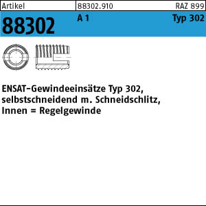 Artikel 88302 A 1 Typ 302 ENSAT-Gewindeeinsätze Typ 302 selbstschn., Schneidschlitz, Regelgew.