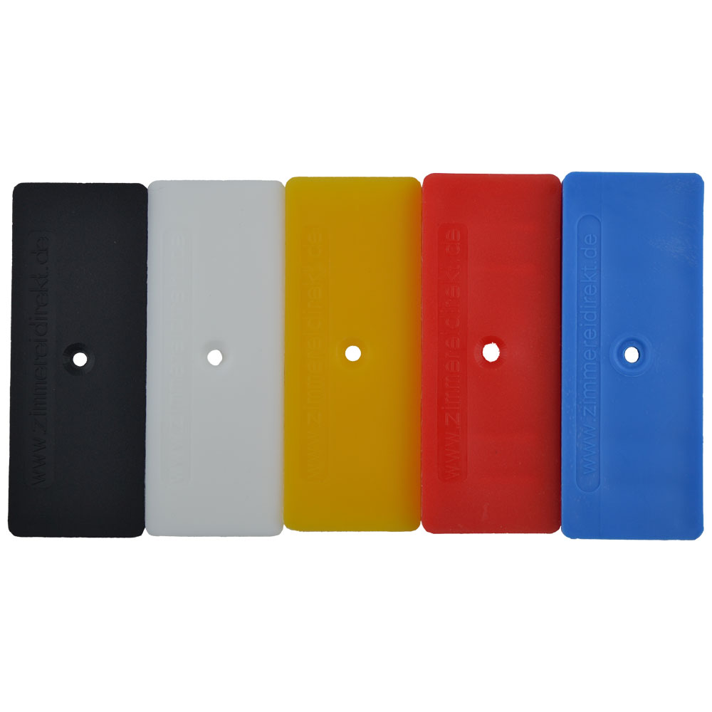 Jede Stärke in anderer Farbe und mit Befestigungsbohrung