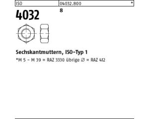 • ISO 4032 Sechskantmuttern, ISO-Typ 1, Regelgewinde