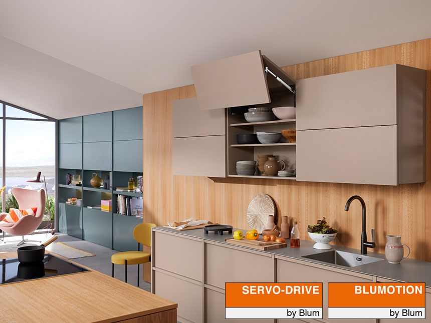Hochfaltklappe AVENTOS HF top ist ideal für hohe Oberschränke. Der Griff