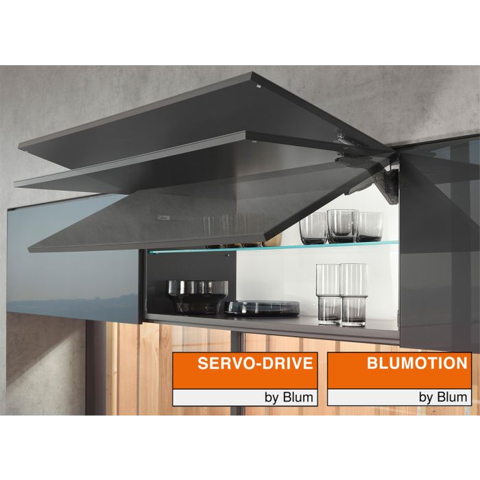 BLUMOTION sorgt für sanftes und leises Schließen. Auch mit SERVO-DRIVE, der elektrischen Bewegungsunterstützung, kombinierbar – entweder für die ganze Küche oder als Einzellösung. Mit TIP-ON können grifflose Klappen mechanisch geöffnet werden.