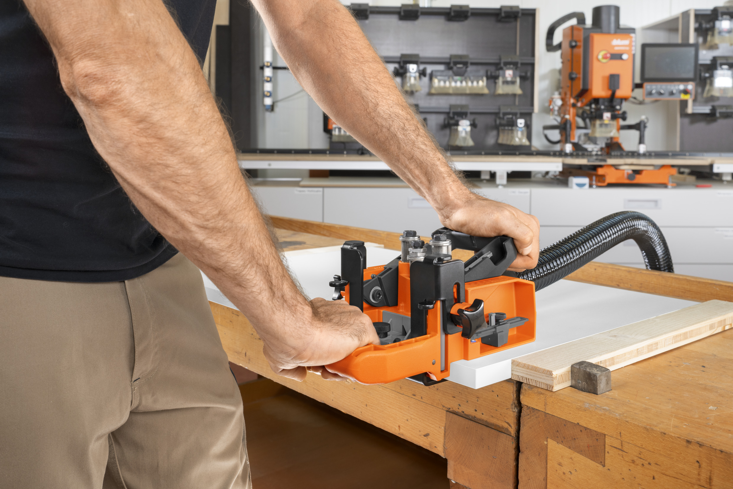 Wir haben die bewährte Verarbeitungshilfe ECODRILL entsprechend den Wünschen unserer Kunden optimiert. Durch das handliche Design und dank neuer, praktischer Funktionen ist die Verarbeitung unserer Scharniere jetzt noch einfacher. Neben dem Einsatz in der Werkstatt lässt sich das platzsparende Handgerät auf jede Baustelle mitnehmen und wird mit Handbohrmaschine oder Akkuschrauber angetrieben.