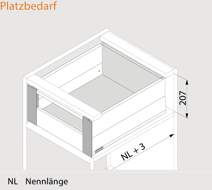 Blum MERIVOBOX Innenauszug Höhe E 192 mm mit Boxcap und Querreling