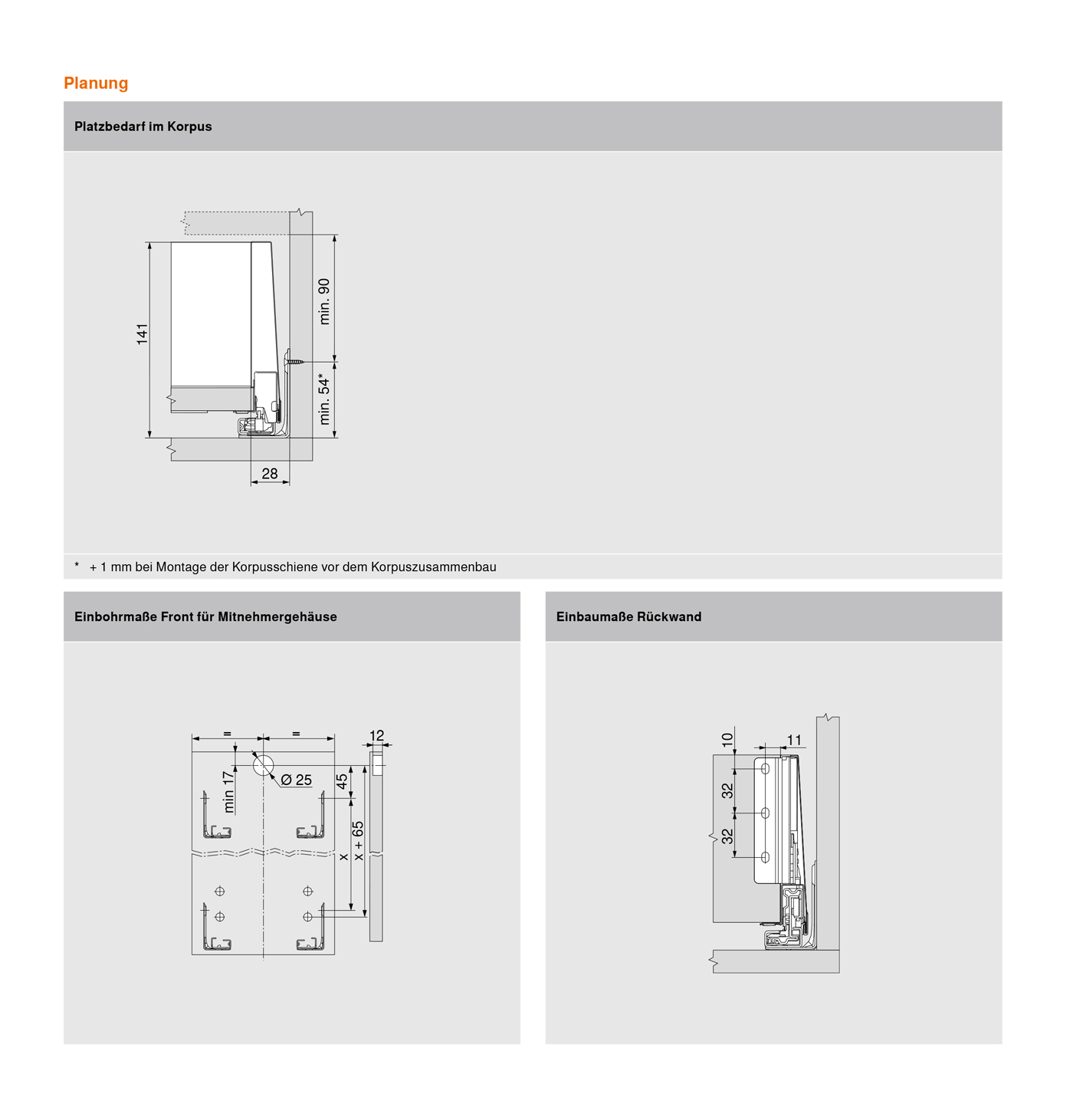• Frontbefestigungen und TIP-ON BLUMOTION Einheit bitte separat bestellen
