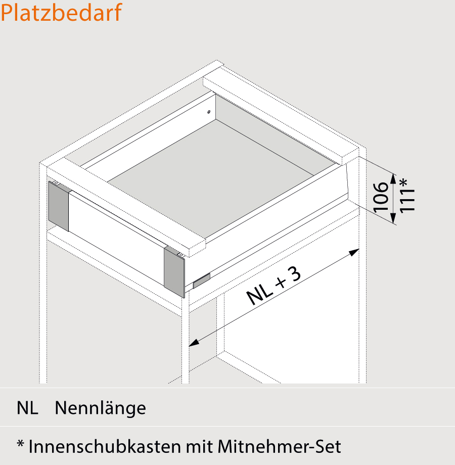 Blum MERIVOBOX Innenschubkasten Höhe M 91 mm