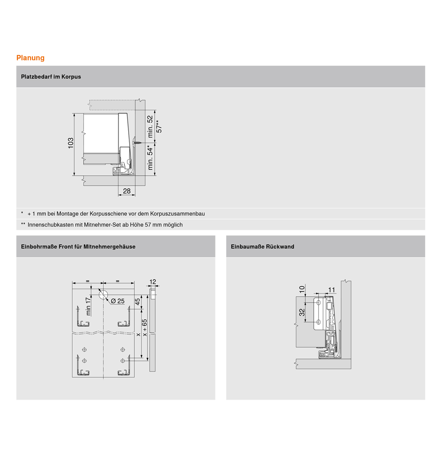 • Frontbefestigungen und TIP-ON BLUMOTION Einheit bitte separat bestellen