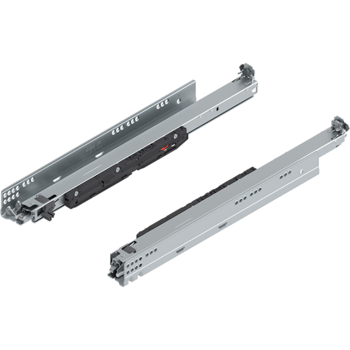 Schon mal mit Schwung einen Auszug geschlossen? Gut, wenn dann die Führungsschiene BLUMOTION S verbaut ist. Der optimierte Dämpfweg erhöht die Dämpfleistung – und Auszüge schließen noch sanfter.