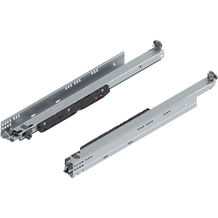 Schon mal mit Schwung einen Auszug geschlossen? Gut, wenn dann die Führungsschiene BLUMOTION S verbaut ist. Der optimierte Dämpfweg erhöht die Dämpfleistung – und Auszüge schließen noch sanfter.