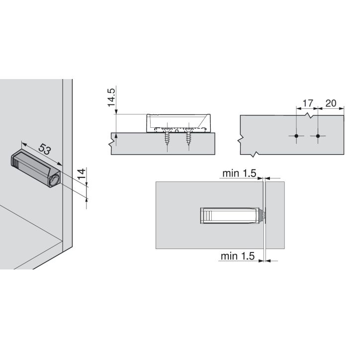 Blum TIP-ON Adapterplatte gerade Kurzversion 20/17 platingrau