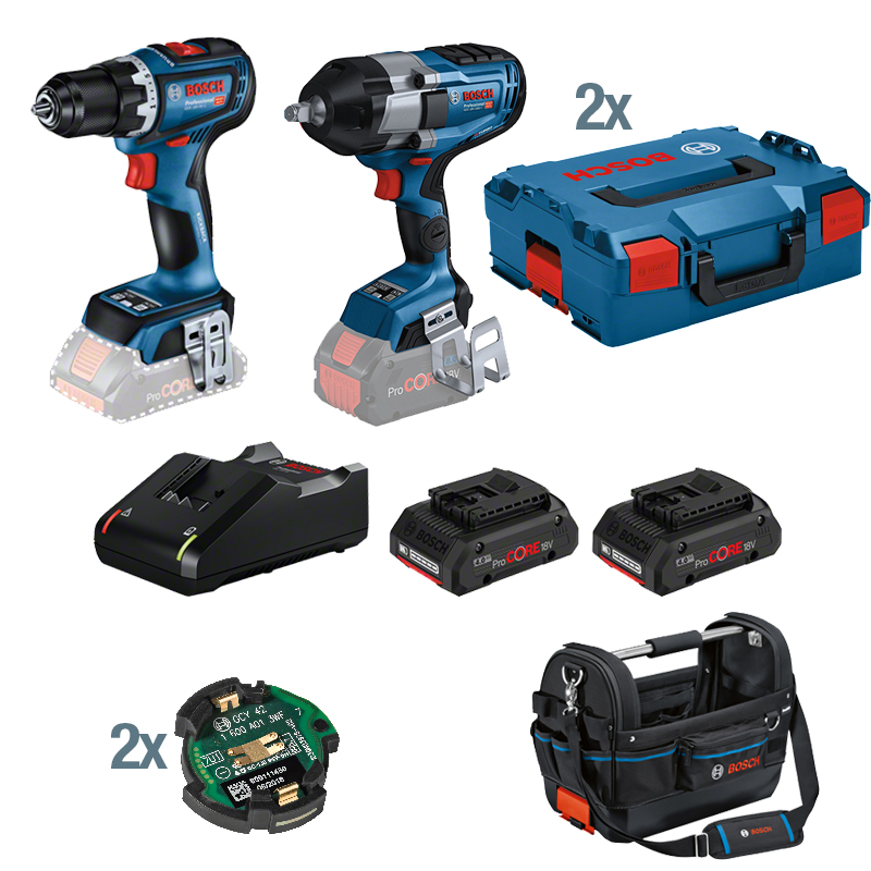 Bosch Set GSR 18V-90C+2 Akku 4Ah+Ladeger.+2 GCY 42+GWT 20+GDS 18V-1000C+2 L-BOXX