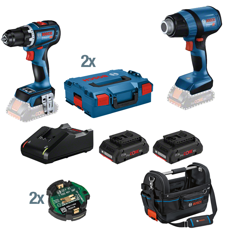 Bosch Set GSR 18V-90C+2 Akku 4Ah+Ladeger.+2 GCY 42+GWT 20+GHG 18V-50+2 L-BOXX