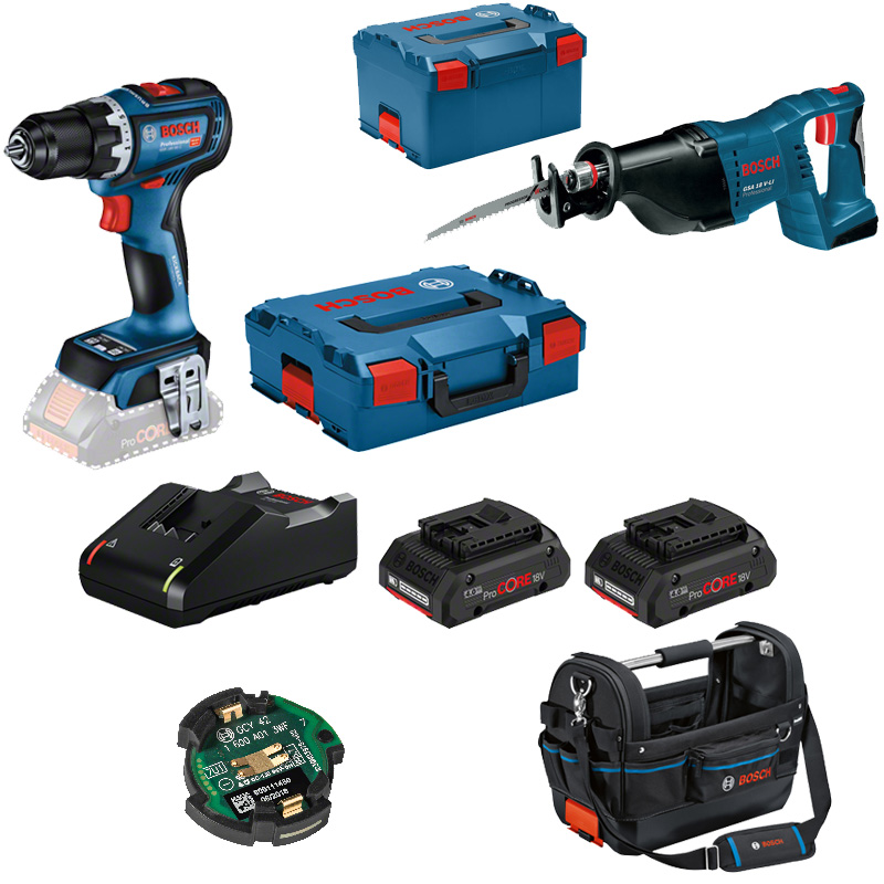 Bosch Set GSR 18V-90C+2 Akku 4Ah+Ladeger.+GCY 42+GWT 20+GSA 18V-LI+2 L-BOXX
