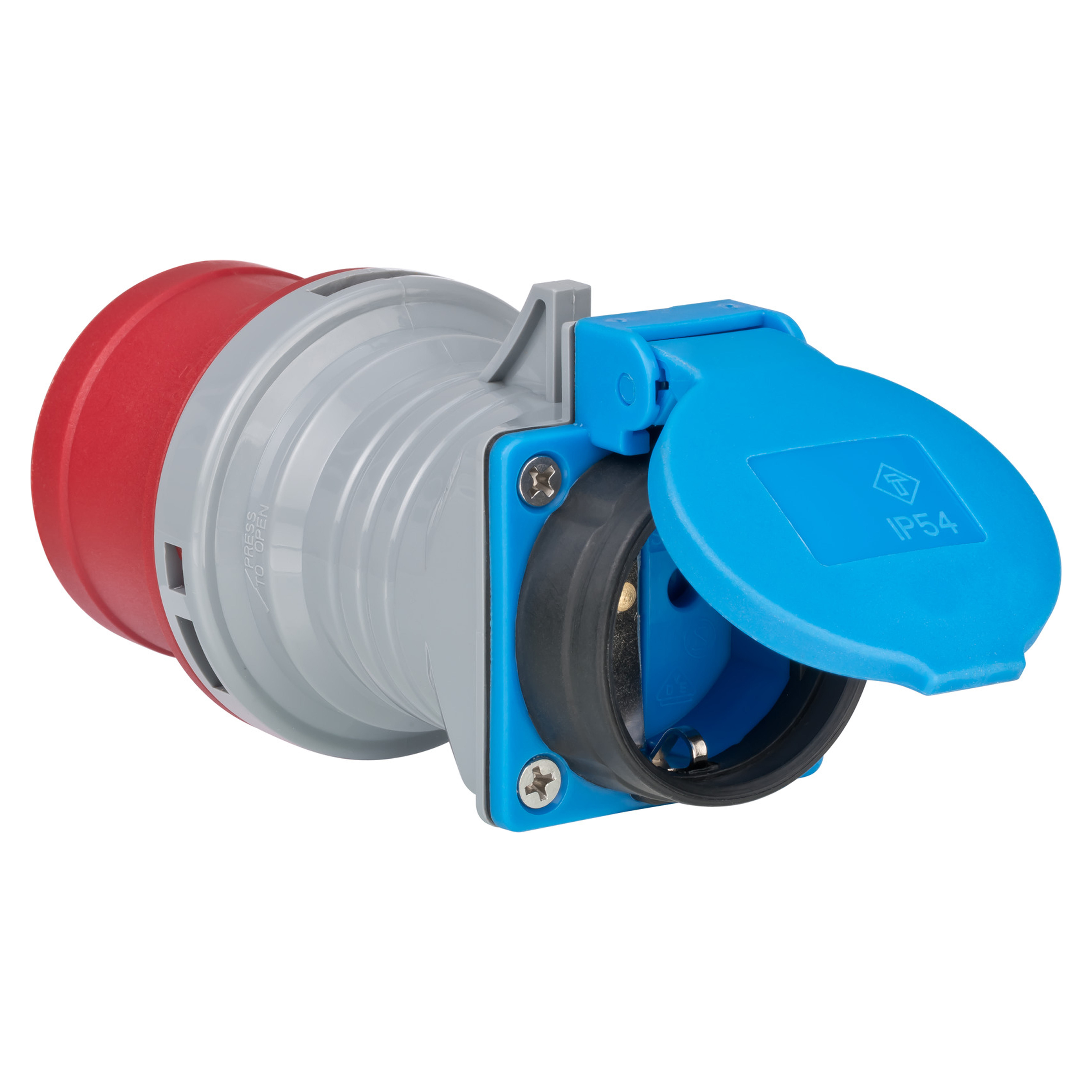 Dieser kompakte und funktioneller CEE Adapter IP44 eignet sich für den ständigen Einsatz im Außenbereich und ist die ideale Lösung, wenn die passenden Anschlüsse nicht vorhanden sind. Die Adapter Kupplung von CEE nach Schutzkontakt-Steckdose ist bestens geeignet für z.B. Montagebetriebe und Handwerker. Schutzart IP44, das stabile Kunststoffgehäuse schützt vor Spritzwasser, Staub und Schmutz. Der CEE Adapter überzeugt außerdem durch folgende Eigenschaften: