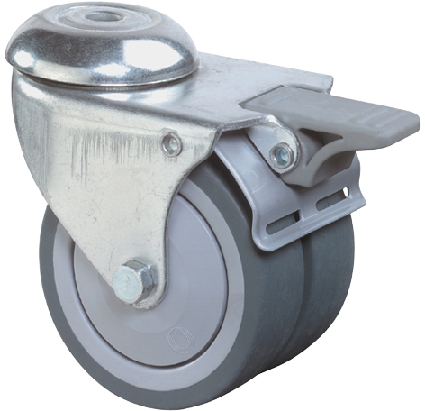 BS Doppellenkrolle Gummirad Konuslager Rückenloch m. Feststeller 50mm blaugrau