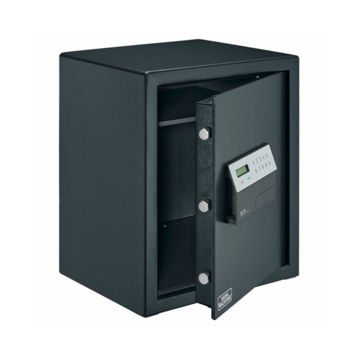 Der Safe bietet praktische Ordnertiefe, um Ihre Dokumente übersichtlich und sicher zu verstauen. Gesteuert wird er über ein programmierbares elektronisches Zahlenschloss mit einer Million möglicher Codeeinstellungen. Für zusätzliche Sicherheit gibt es ein Zusatzschloss für die Notöffnung. Die erforderlichen Batterien (4× 1,5 V Mignon AA) sind im Lieferumfang enthalten.