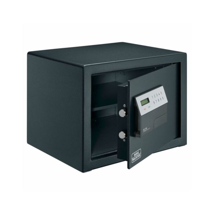 Der Safe bietet praktische Ordnertiefe, um Ihre Dokumente übersichtlich und sicher zu verstauen. Gesteuert wird er über ein programmierbares elektronisches Zahlenschloss mit einer Million möglicher Codeeinstellungen. Für zusätzliche Sicherheit gibt es ein Zusatzschloss für die Notöffnung. Die erforderlichen Batterien (4× 1,5 V Mignon AA) sind im Lieferumfang enthalten.