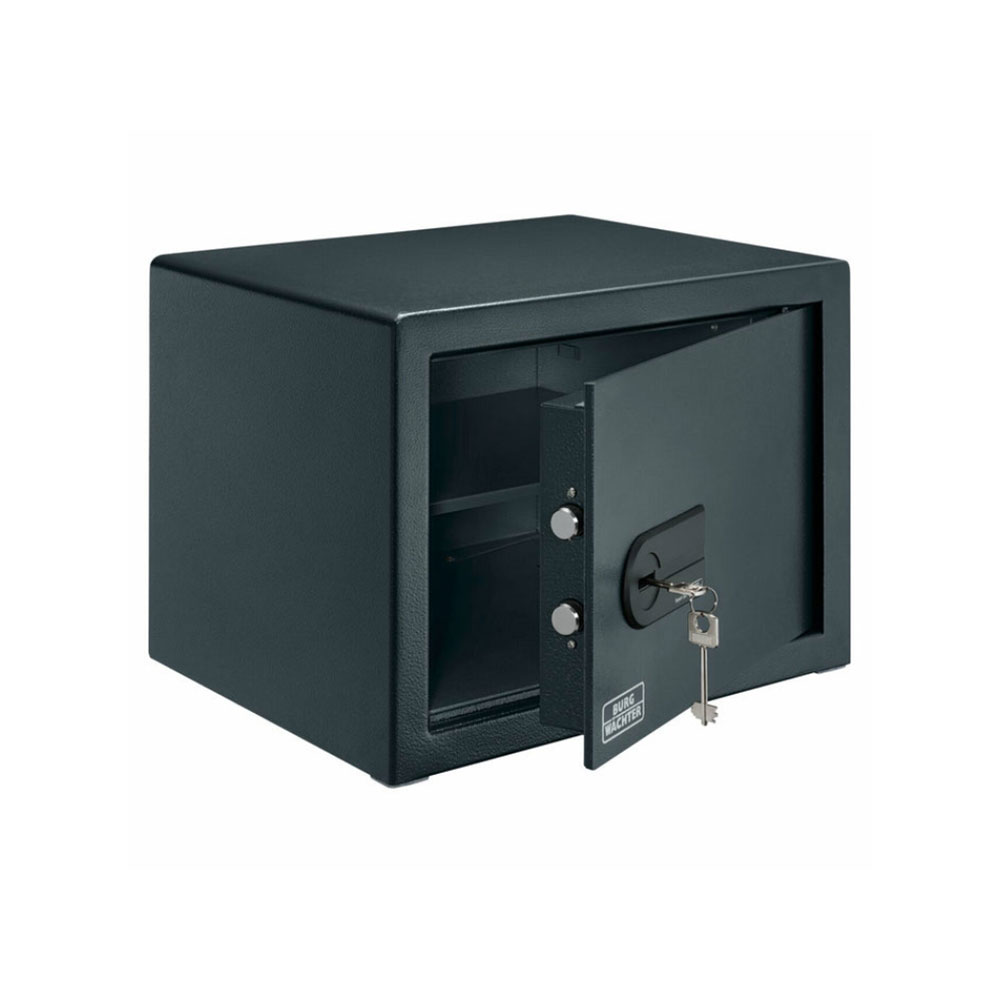 Die Sicherung übernimmt ein klassisches Sicherheits-Doppelbartschloss mit zwei Schlüsseln – zuverlässig, bewährt und sicher.
