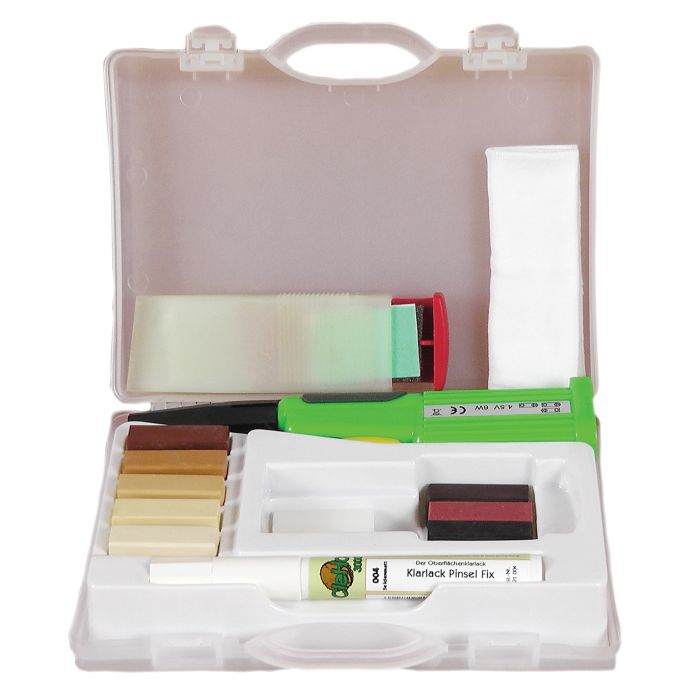 Reparaturset aus Hartwachsbasis für kleine Beschädigungen an Parkett, Treppen, Fliesen, Steinböden etc.