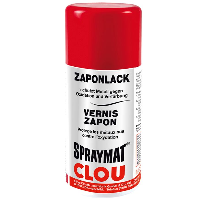 Farbloser, glänzender Metallfirnis (Silberzapon) auf Basis von Nitrozellulose.
