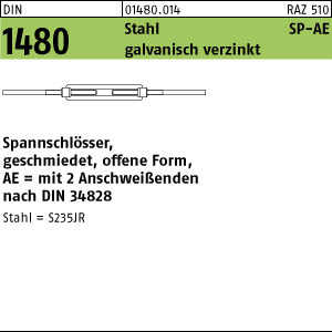 DIN 1480 Stahl SP-AE galvanisch verzinkt Spannschlösser, geschmiedet, offene Form mit 2 Anschweißenden
