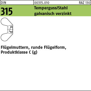 DIN 315 Temperguss/Stahl galvanisch verzinkt Flügelmuttern, runde Flügelform, Produktklasse C (g)