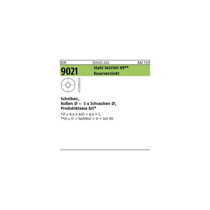 DIN 9021 Stahl 140/100 HV feuerverzinkt Scheiben, Außen Ø ~3 x Schrauben Ø, Produktklasse A/C