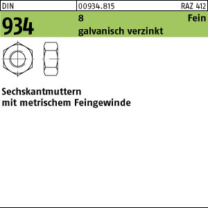 DIN 934 8 Fein galvanisch verzinkt Sechskantmuttern mit metrischem Feingewinde