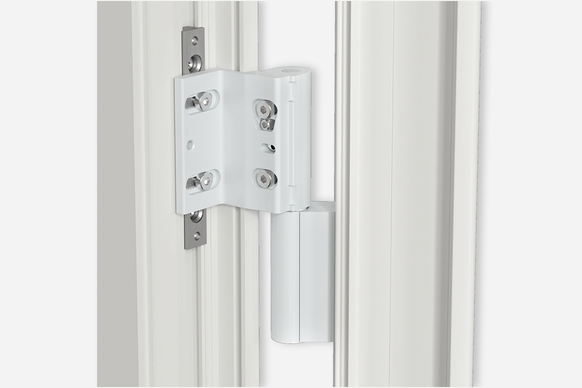 Das neue Hahn KT-RV wird in der Falz verschraubt und löst das bisherige Hahn KT-R ab. Neben einer moderneren Kontur, ist die neue Bandvariante nun in sechs Richtungen ohne Rollenversatz verstellbar. Die Verstellung erfolgt vertikal und horizontal stufenlos, je nach Bedarf. Durch Verdrehen der Lagerbuchse kann der Dichtungsandruck um +/- 0,5 mm angepasst werden. Je nach eingesetztem Systemprofil trägt die 2-teilige Ausführung bis zu 120 Kg.