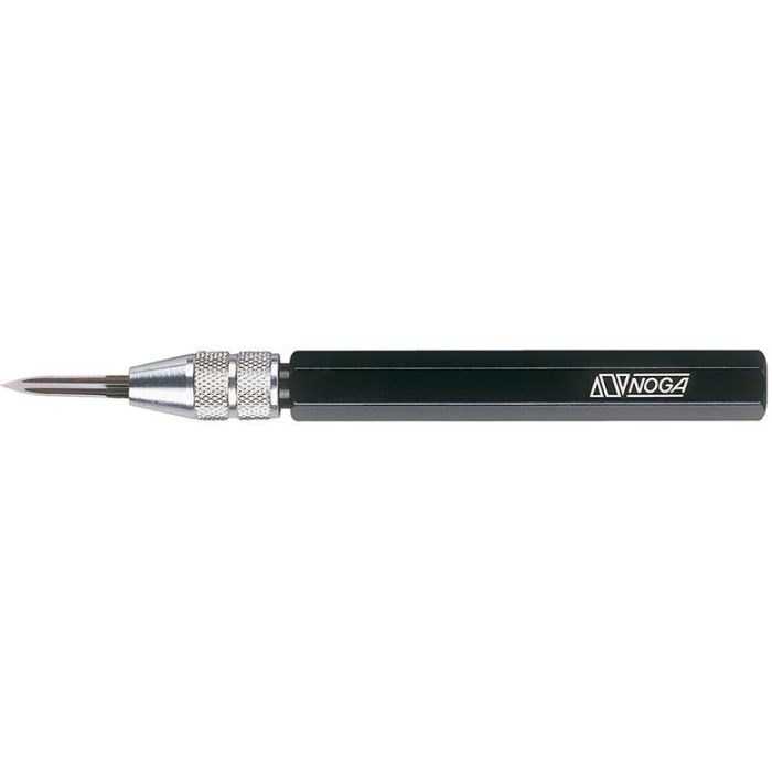 • Aluminium-6-kant-Griff (12 mm eloxiert) mit Spannmutter zur Einstellung der Klingenlänge