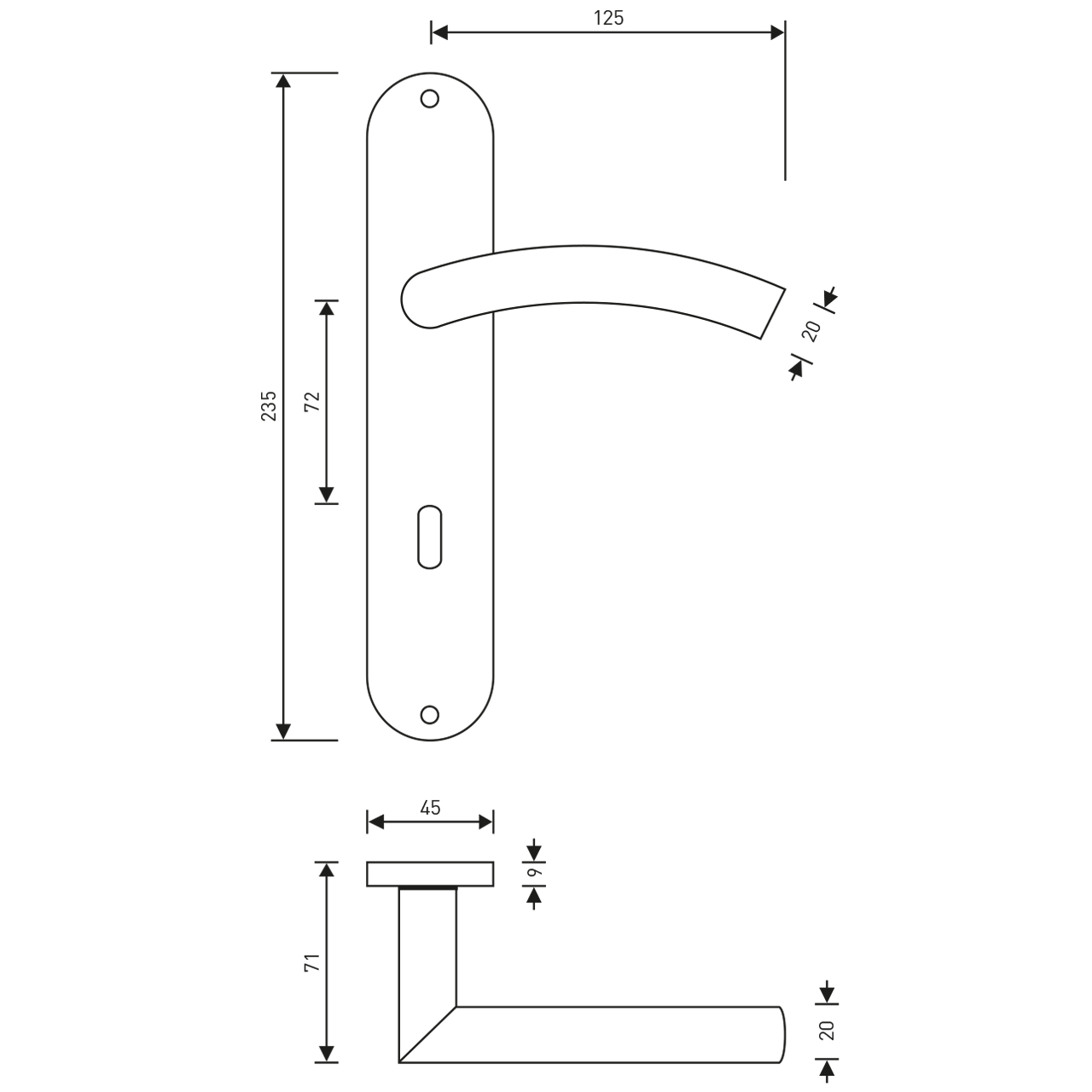EUROBAT FERAY LR Langschildgarnitur Rund Edelstahl Matt