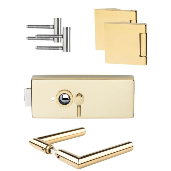 - EUROBAT Glastürschloss BANDOS (UV, BB, PZ, WC H) in Edelstahl Messingfarbig poliert