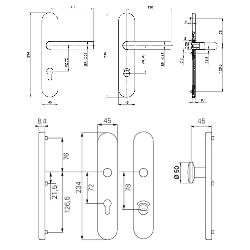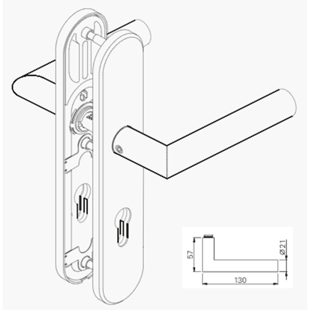 • Festdrehbar gelagerter Drücker