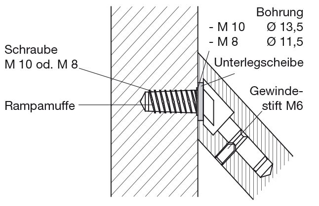 EUROBAT Montageset Holz einseitig Schräge Stützen mit Rampamuffe