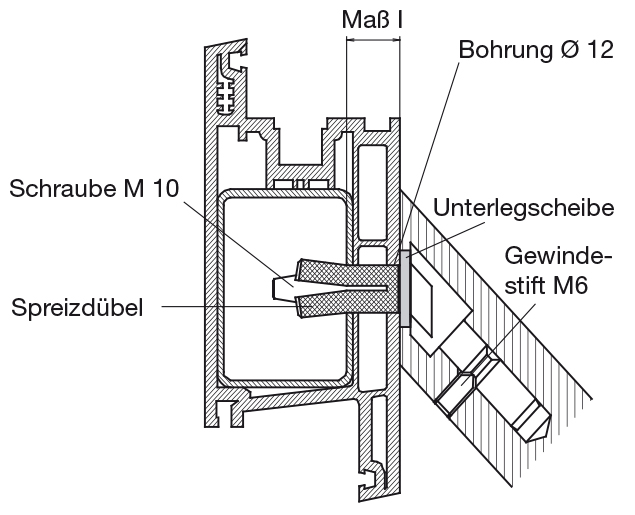 EUROBAT Montageset Kunststoff/Metall einseitig Schräge Stützen m. Spreizdübel