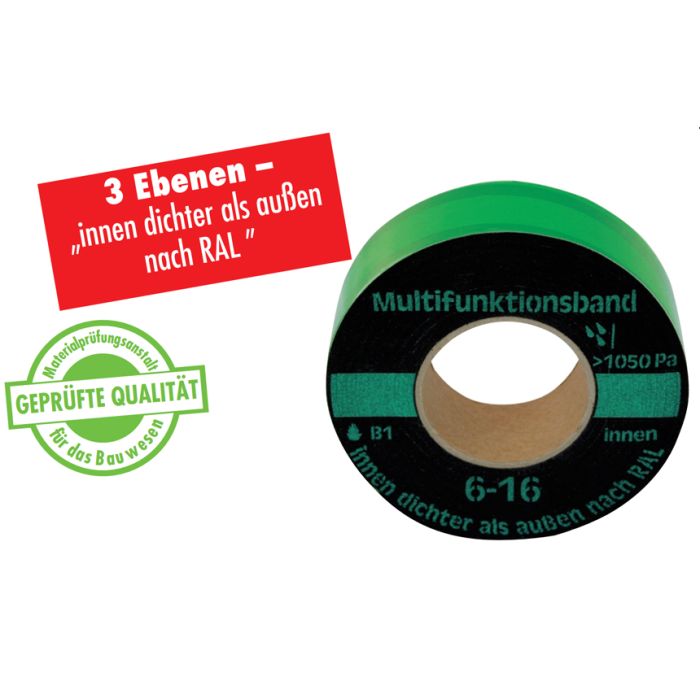 vorkomprimiertes Multifunktionsband zur Luft- und Schlagregenabdichtung,