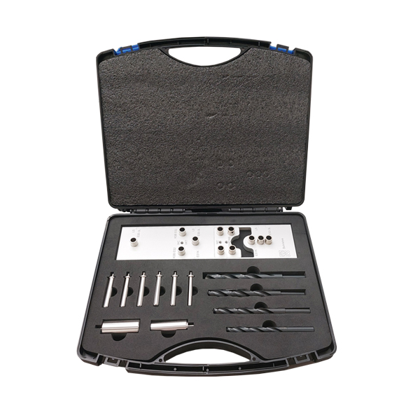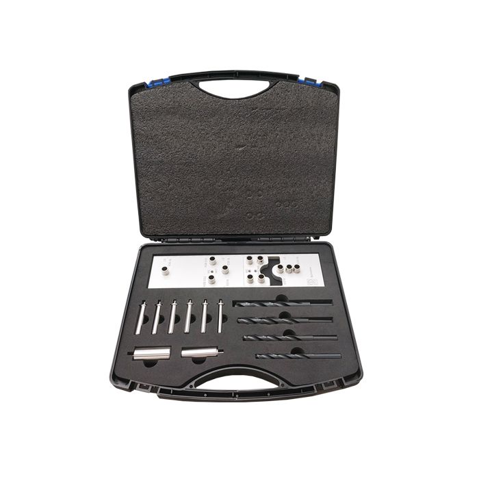 Geeignet für alle Rundrosetten-, Kurzschild-, Langschild- und Schutzbeschläge. Hochwertige Ausführung aus eloxiertem Aluminium mit gehärteten Bohrbuchsen, Zentrierdornen (Ø 7 mm, Ø 8 mm, Ø 8,5 mm, Ø 9 mm und Ø10 mm) und HSS Bohrern zum Bohren und Aufbohren der Montagelöcher. Komplett im handlichen Kunststoffkoffer.