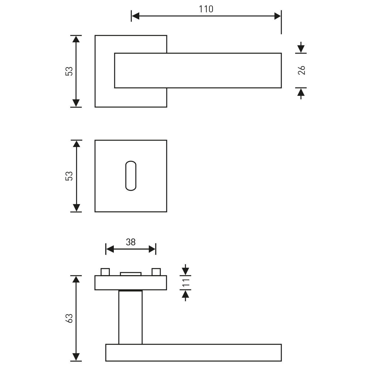| Lagerung | Drücker lose gelagert, Hochhaltefeder in Rosette |