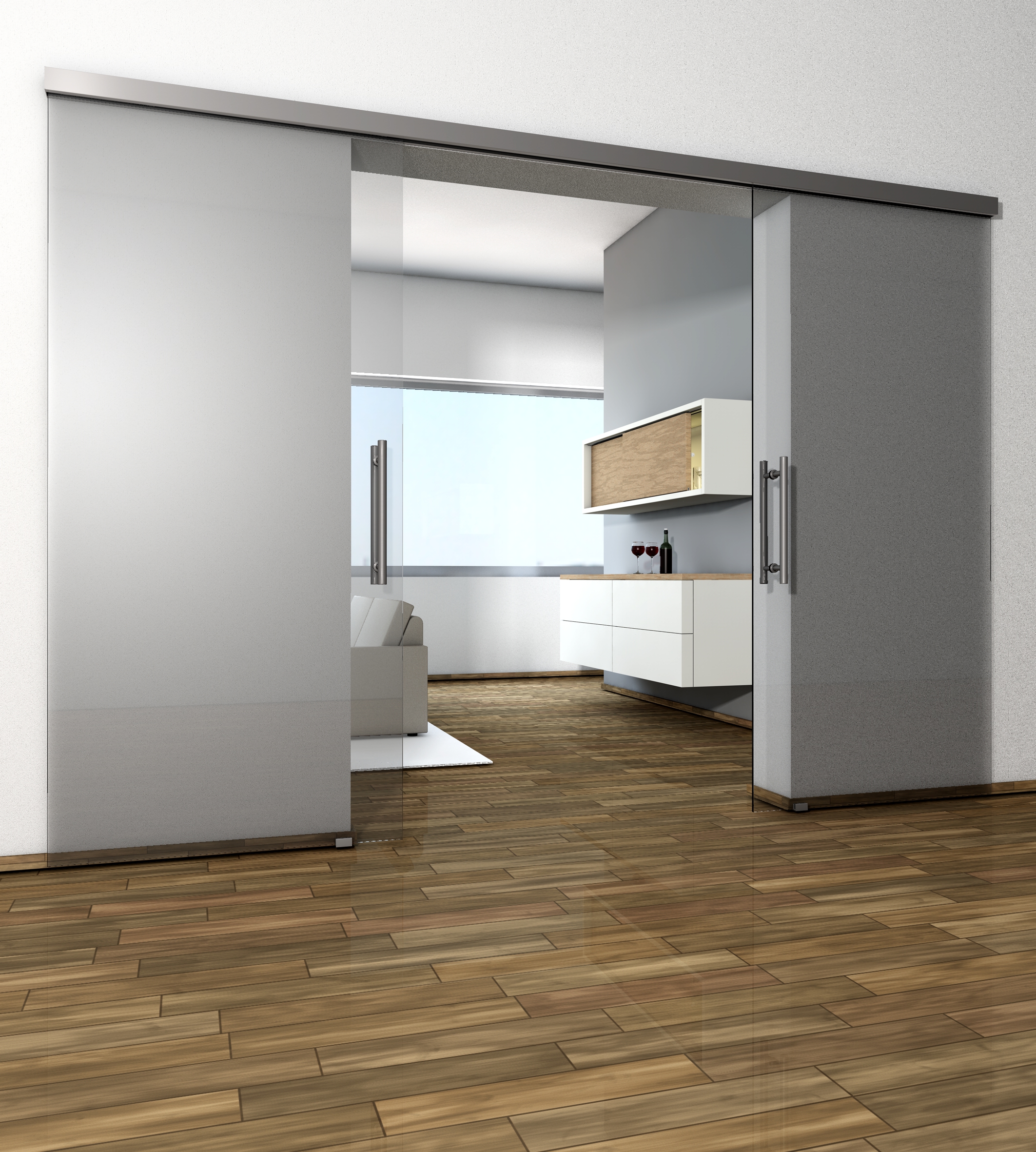 • 2-flügelige Glas oder Holztüren