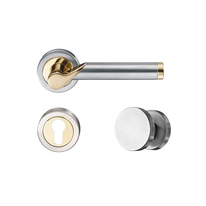 EUROBAT Türdrückergarnitur JEREZ RR WG LS messingfarbig poliert-Edelstahl matt