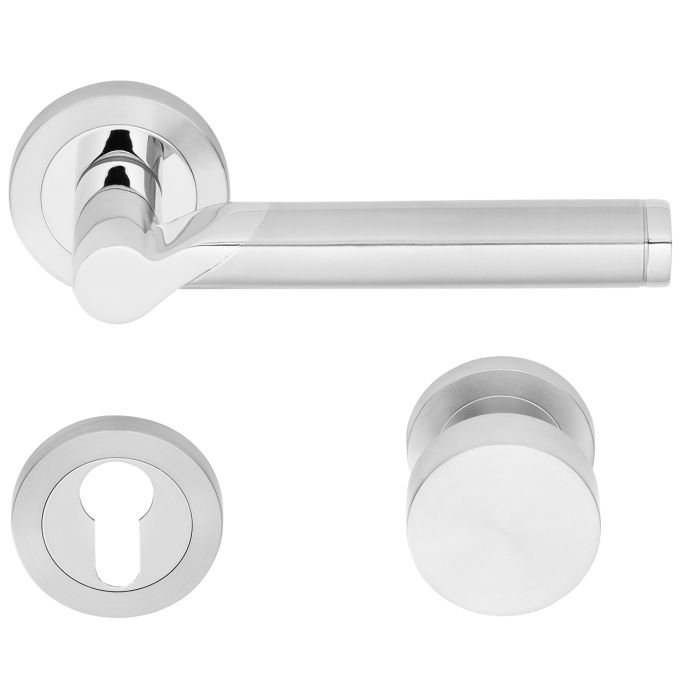 EUROBAT Türdrückergarnitur Jerez SRR WG RS Edelstahl matt-Edelstahl pol.