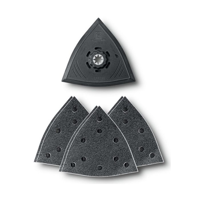 - 1 große gelochte Dreiecks-Schleifplatte (Kantenlänge 130 mm)