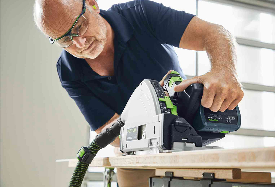 Oft entscheidet schon eine Millisekunde: Der Rückschlag ist die häufigste Ursache für schwere Verletzungen mit einer Tauchsäge. Deshalb stoppt unser einzigartiger KickbackStop das Sägeblatt unserer Akku-Tauchsäge schneller als ein Wimpernschlag und schützt so nicht nur euer Werkstück, sondern minimiert auch die Verletzungsgefahr für eure Hände. Darüber hinaus gelingen präzise Schnitte jetzt bis zu doppelt so schnell und kraftvoll bei gleichzeitig höherer Akku-Reichweite. In Kombination ermöglicht unsere neue Sägeblatt-Generation maximale Schnittleistung und perfekte Schnittqualität. Abgerundet wird das Säge-System mit cleverem Systemzubehör wie Führungsschienen, Winkelanschlag, Splitterschutz und Sägetisch.