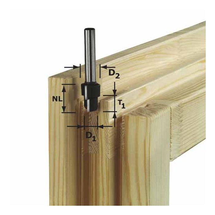 • Mit der Fräshilfe kann der Stufenfräser sicher auf der Kante des Fensterflügels geführt werden