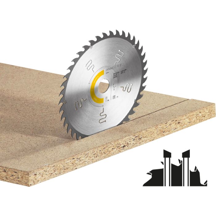 • Universal-Sägeblatt zum Bearbeiten von Vollholz Querschnitt, Tischlerplatten, Sperrholz, Multiplex/Lagenholz, Spanplatten roh, MDF Mitteldichte Faserplatten und HDF Hartfaserplatten