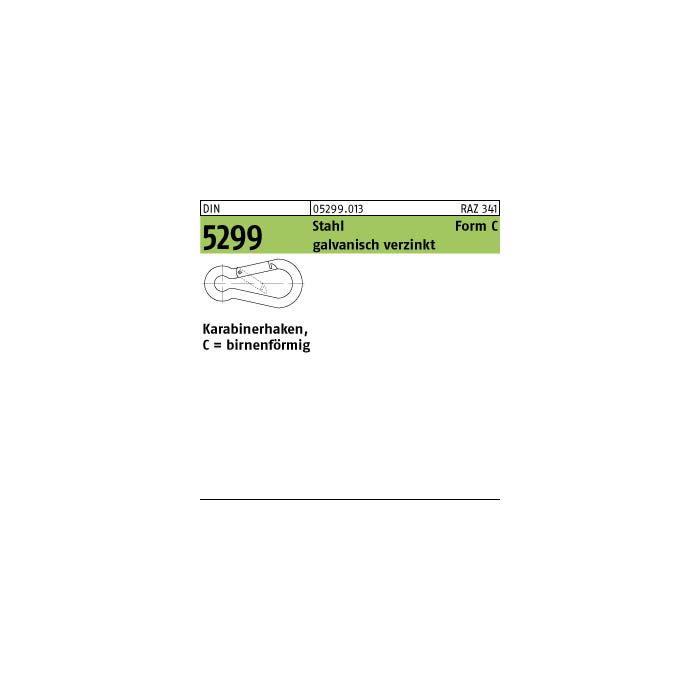 DIN 5299 Stahl Form C galvanisch verzinkt Karabinerhaken, birnenförmig