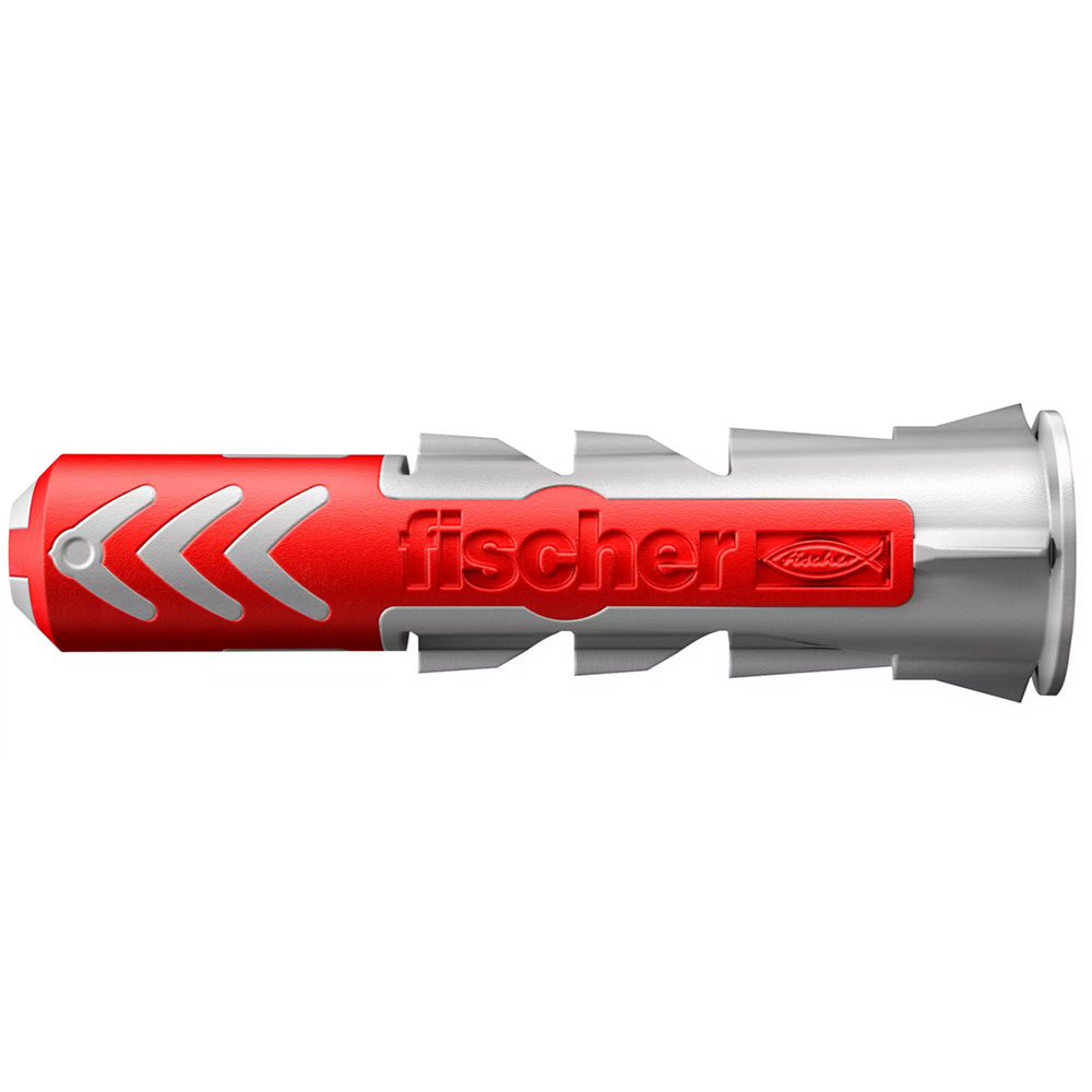 Der fischer DuoPower bietet sehr gute Haltewerte durch 2 Komponenten: Die graue Komponente aus hochwertigem Nylon aktiviert je nach Baustoff automatisch das optimale Funktionsprinzip (Spreizen, Klappen, Knoten) für besten Halt. Die Expansionsflügel der roten Komponente unterstützen die sichere Verspreizung und bieten zusätzliche Sicherheit zur grauen Komponente. Einfaches Eindrehen der Schraube und richtiges „Ziehen“ zum Schluss. Kein Überdrehen der Schraube. Der am Dübelkopf angeformten Rand verhindert, dass der Dübel ins Bohrloch rutscht.