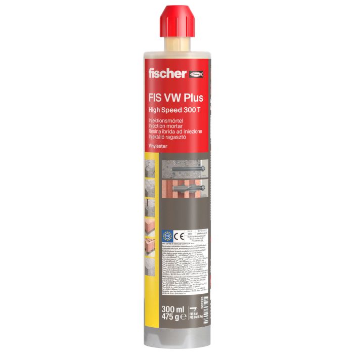 Der fischer Hochleistungsmörtel FIS VW Plus ist der universelle Alleskönner für höchste Anforderungen. Der styrolfreie Vinylester-Hybridmörtel mit seinen zahlreichen Befestigungselementen ist zugelassen für Befestigungen in gerissenem und ungerissenem Beton sowie Mauerwerk. Der Injektionsmörtel wird aber auch mit den fischer Verblendsanieranker VBS 8, den fischer Wetterschalenanker FWS II und das Abstandsmontagesystem TherMax verwendet. Die kürzere Aushärtezeit der Variante FIS VW Plus High Speed erlaubt auch bei niedrigen Temperaturen einen zügigen Arbeitsfortschritt.
