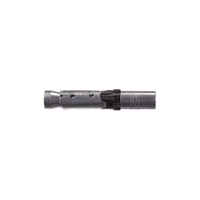 Der fischer Hochleistungsanker FH II-I ist ein Innengewindeanker aus galvanisch verzinktem Stahl. Der Anker wird in der Vorsteckmontage gesetzt. Bei der Montage mit einem Sechskantschlüssel wird der Konus in die Spreizhülse gezogen und verspannt diese gegen die Bohrlochwand. Gleichzeitig zieht sich der Anker durch die Stauchung des schwarzen Kunststoffrings zusammen. Damit sitzt die Ankerhülse zulassungskonform unter dem Bohrlochrand.