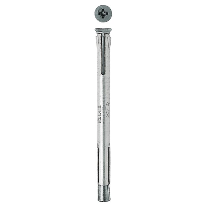Der fischer Metallrahmendübel F 8 M ist ein Spezialdübel zur spannungsfreien Abstandsmontage von Fenster- und Türrahmen. Dieser besteht aus einer Metallhülse und einer Linsenflachkopfschraube aus galvanisch verzinktem Stahl. Der F 8 M wird zeitsparend in der Durchsteckmontage gesetzt. Beim Anziehen der Schraube wird der Konus in die Dübelhülse gezogen, spreizt auf und verspannt sich gegen die Bohrlochwand. Dadurch wird der Fensterrahmen spannungsfrei in Voll- und Lochbaustoffen befestigt.