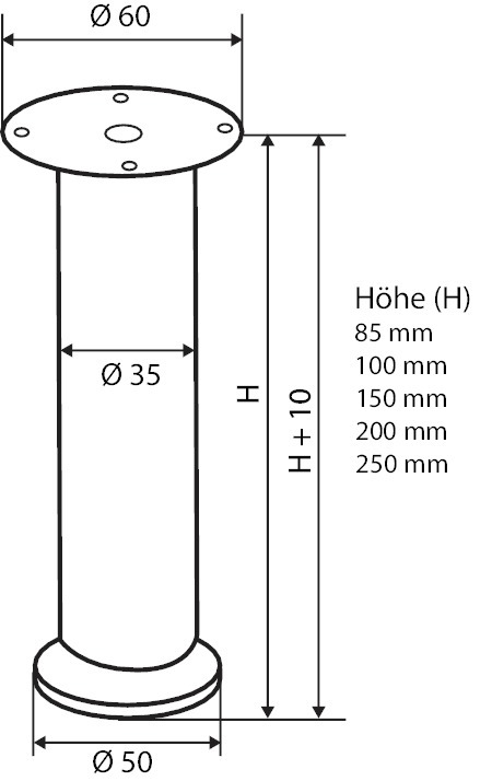 FORMAT Möbelfuss Joti L=150mm Edelstahl optik